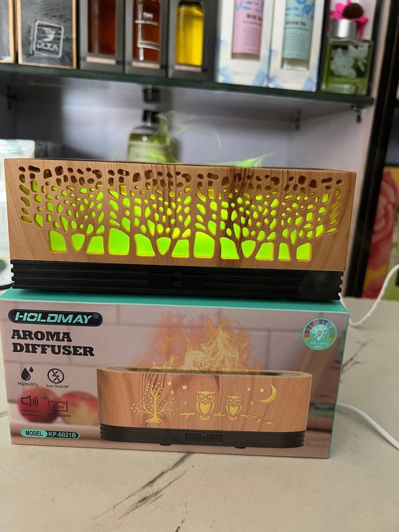Enjoy the relaxing benefits of aromatherapy with the HOLDMAY Aroma Diffuser. Featuring a nature-inspired wood grain design and cut-out tree pattern, this diffuser offers colorful light effects and whisper-quiet misting to elevate your space. With auto shut-off and easy controls, it’s both functional and decorative.